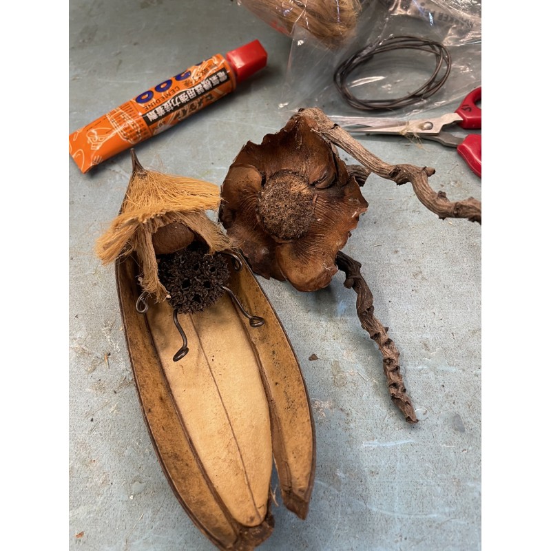 頭-檳榔鬚 臉-檳榔種子 身體-飄香樹種子