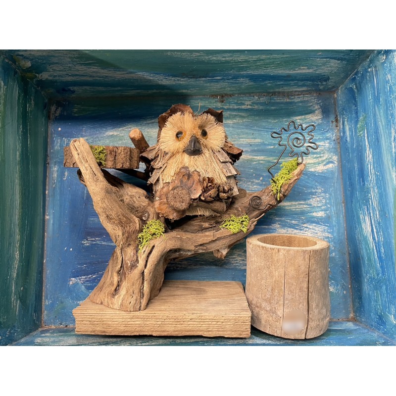 利用稻草、葉子、木頭和椰子蒂頭,及自然素材製作而成,貓頭鷹代表吉祥,也象徵知識與智慧,這麼特別的造型,獨一無二、僅此一個,還不趕快下單搶購!