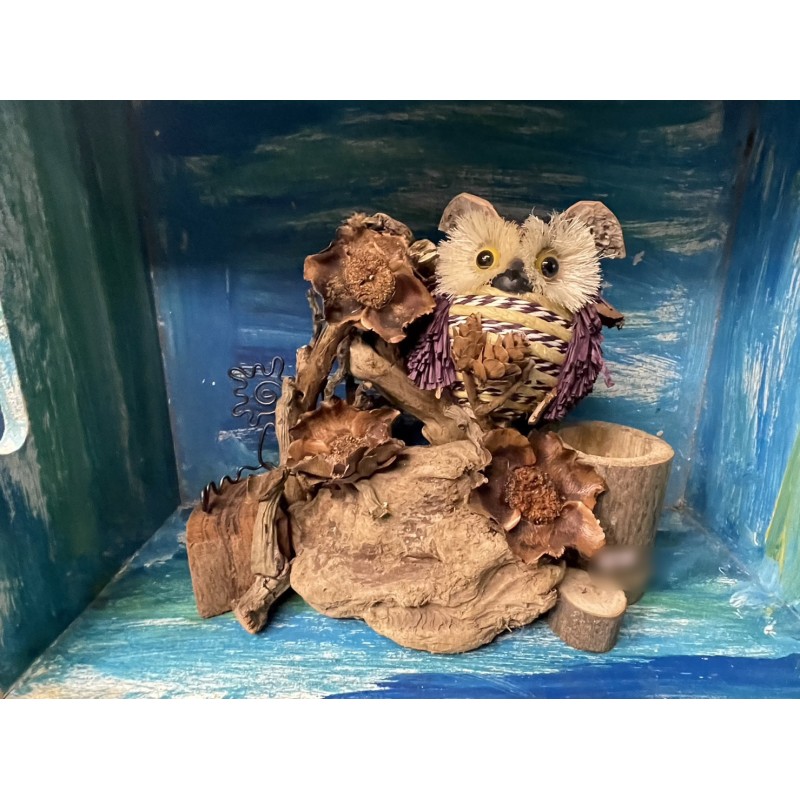 利用稻草、紙繩、木頭和椰子蒂頭,及自然素材製作而成,貓頭鷹代表吉祥,也象徵知識與智慧,這麼特別的造型,獨一無二、僅此一個,還不趕快下單搶購!