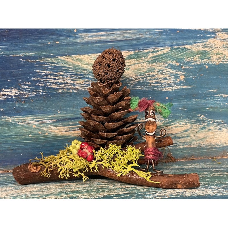 利用松果、樟樹以及自然素材完成獨一無二的創做
