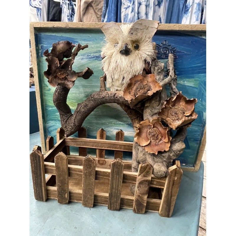 利用稻草、木頭和椰子蒂頭,及自然素材製作而成,旁邊的籃子,可用來放些小東西,讓你方便收納,不怕找不到東西,貓頭鷹代表吉祥,也象徵知識與智慧,這麼特別的造型,獨一無二、僅此一個,還不趕快下單搶購!